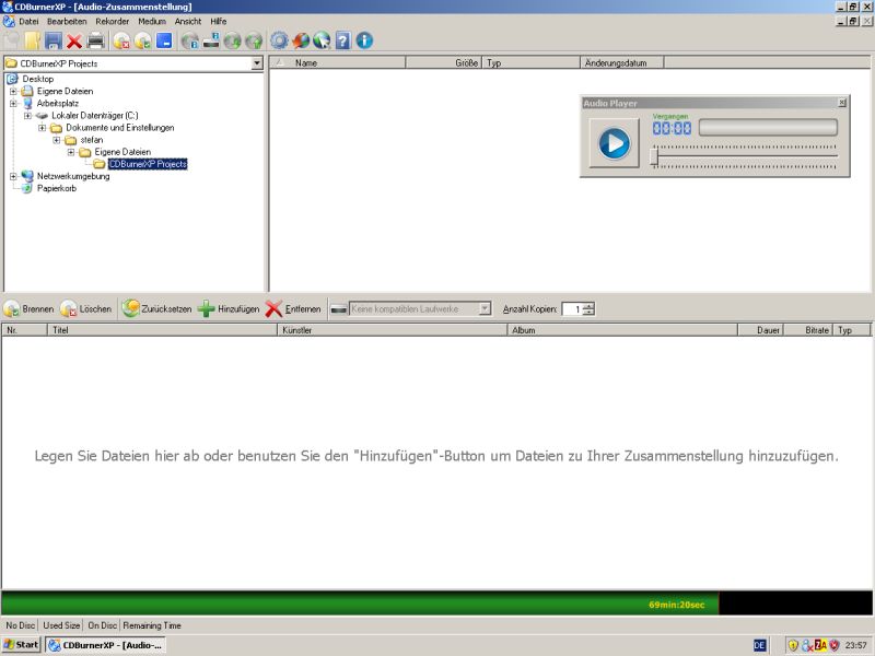 Beschreiben Sie alle Arten von CD-Medien (ausgenommen double-layer DVD).Brennen von Audio-CDs mit oder ohne Pause zwischen den Tracks.